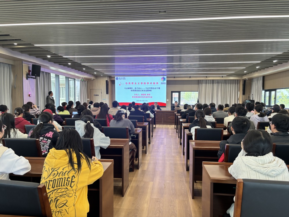 2025年10月22日下午,我院“明德讲堂”第二十七讲盛邀宁德师范学院马克思主义学院原党委书记、院长,教育部国培计划专家库专家游国斌教授为全院师生作《山海情怀,赤子初心——习近平同志在宁德的探索实践及其深远影响》主题报告。会议由学院党总支书记、院长尹怀斌主持,学院领导班子和全体思政课教师、学生党员、思想政治教育专业大一学生参加了报告会。