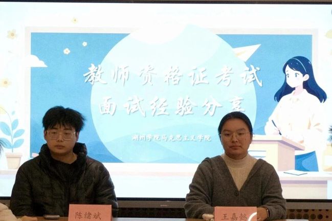 交流会上,大四学生陈绪斌和王嘉懿分别分享了通过教资面试的宝贵经验。他们通过介绍教资面试的流程、现场面试细节以及日常说课训练技巧,让同学们对备考及面试全过程有了更清晰的认识。在答疑环节中,学长学姐耐心解答了同学们在备考中遇到的困惑。