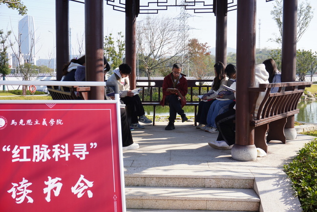 近日,一场围绕“红色”与“科技”主题的读书会在马克思主义学院楼凉亭举行。本次读书会邀请了学术导师刘志刚,与10余名学生共同研读《马克思生态社会主义:资本主义、自然与未完成的政治经济学批判》与《习近平的七年知青岁月》,在思想碰撞中探寻红色精神与科技发展的时代联结。
