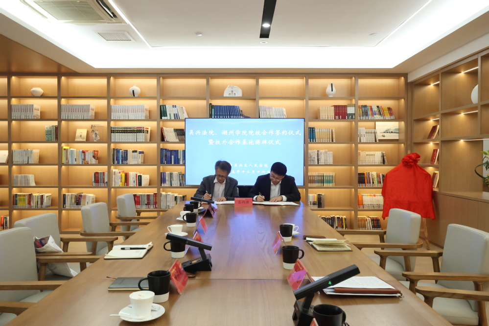 2025年12月16日,湖州学院马克思主义学院与湖州市吴兴区人民法院成功举行党建联建、实践基地、产学研合作基地签约仪式,标志着校地合作、协同育人迈上新台阶。学院领导班子与党员教师代表参与此次活动,吴兴区人民法院院长赵龙、政治部主任佘玲晶等法院领导出席仪式并签约。
