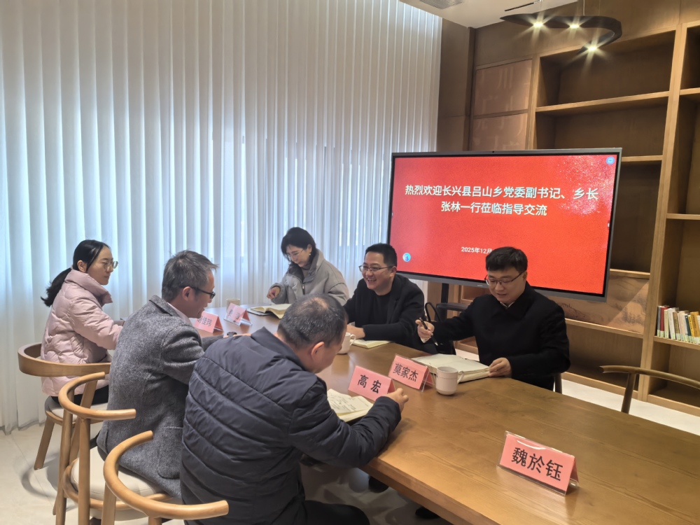 2025年12月18日,长兴县吕山乡党委副书记、乡长张林率队莅临我院考察指导。学院党总支书记、院长尹怀斌率队热情接待并举行工作座谈。双方围绕深化校地合作、推动产学研融合、共育时代新人等议题展开深入交流,并成功签署产学研合作基地协议,举行现场授牌仪式。